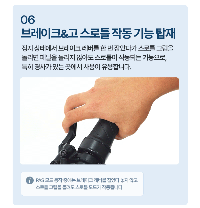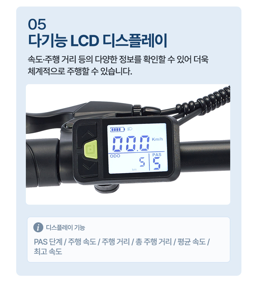 | 주행방식 | PAS(5단) / 스로틀(크루즈) 겸용 |