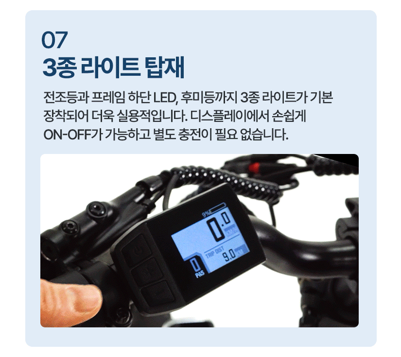 | 주행방식 | PAS(5단)/스로틀(크루즈) 겸용 |