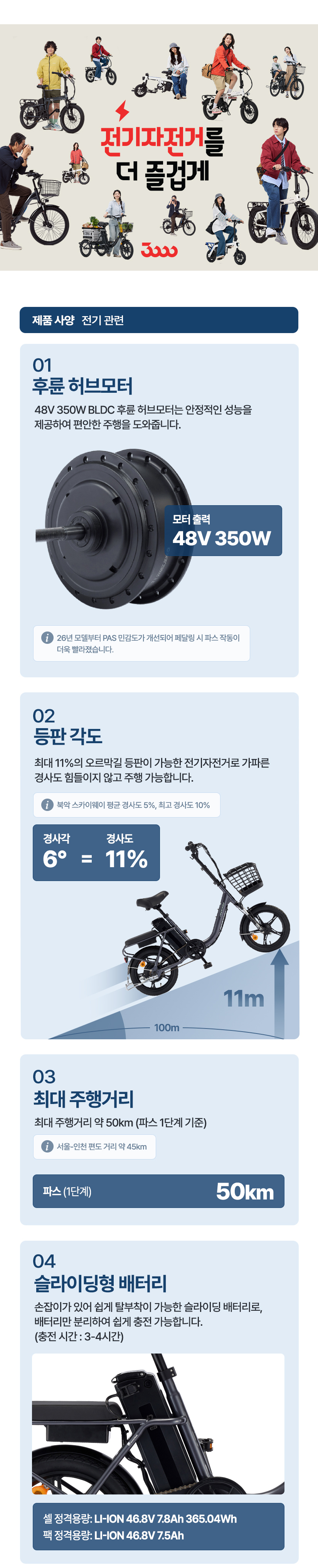 | 모터 | 48V 350W BLDC 후륜 허브모터 |