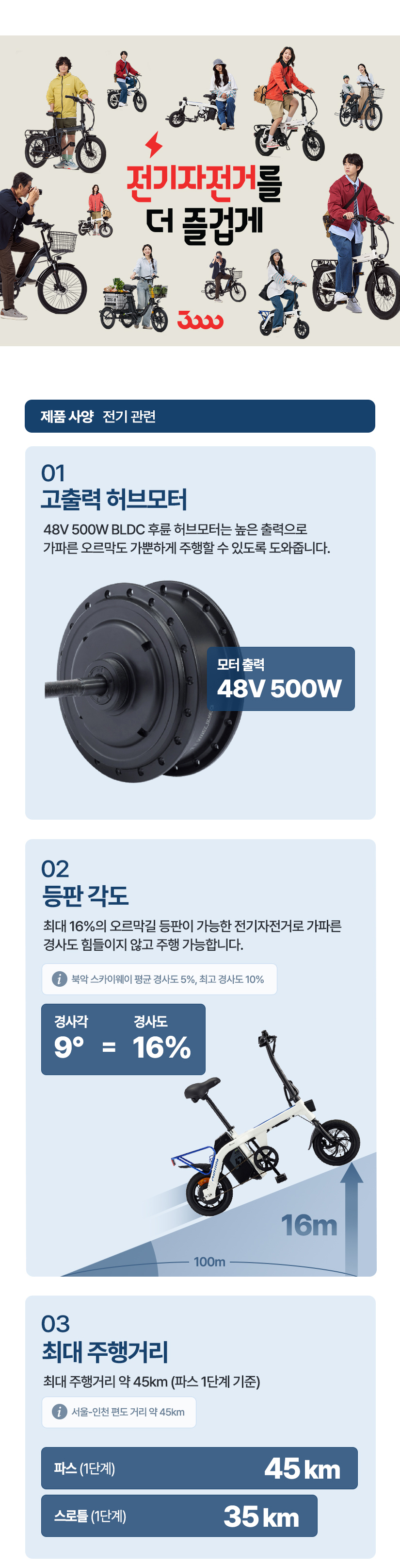 | 주행거리 | PAS 1단계: 약45km / 스로틀 1단계: 약35km |